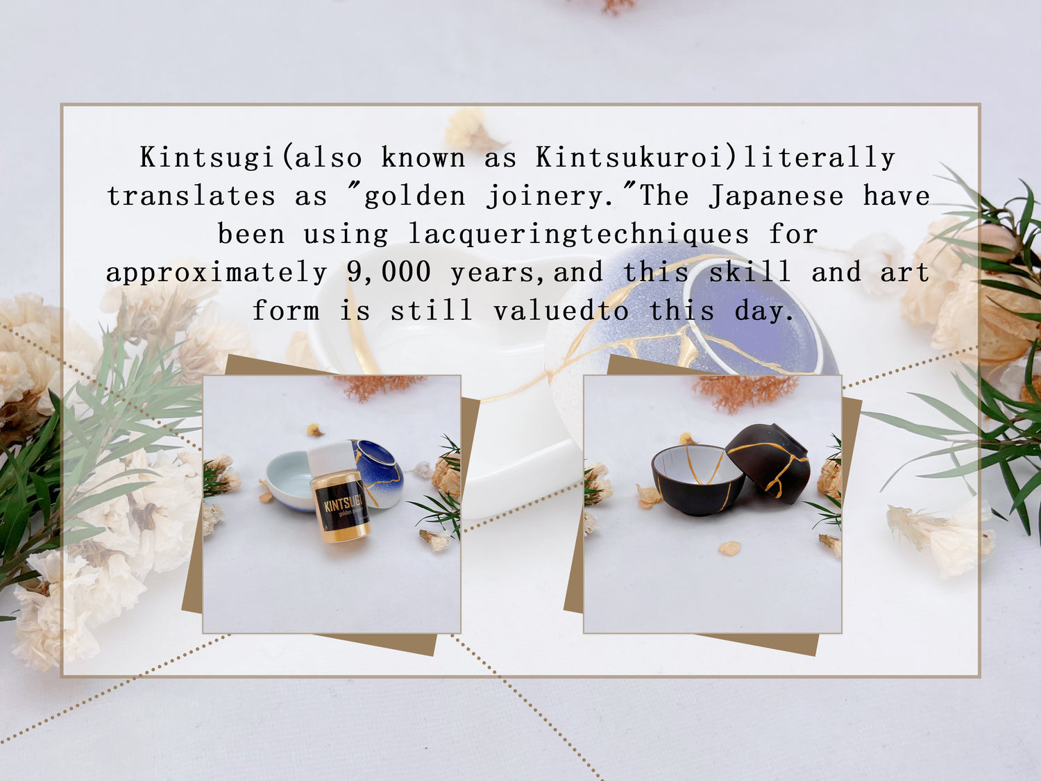 It is an ancient art. It is the beauty that the ancients discovered when they were repairing pottery. It is an imperfect beauty.